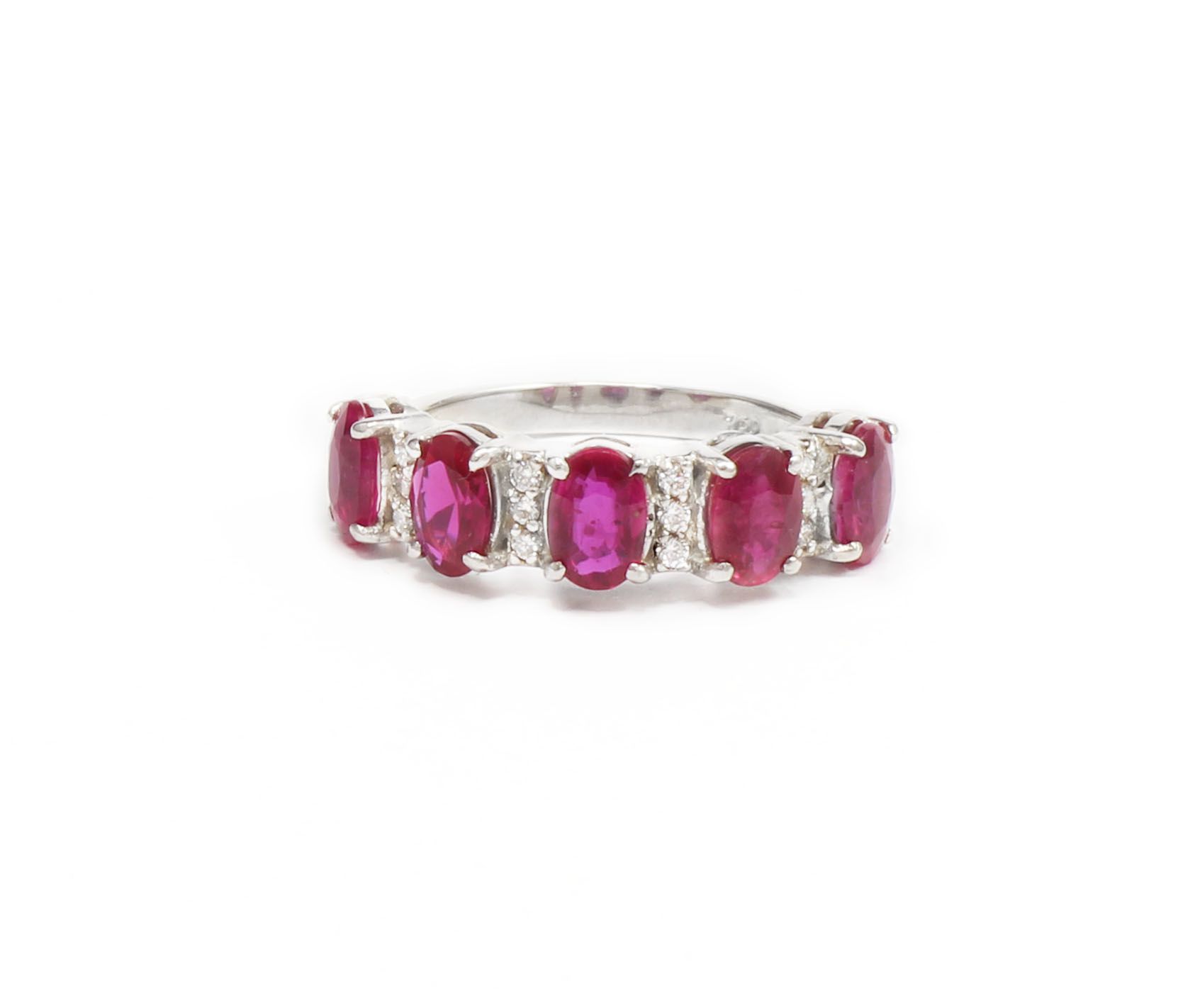 Meia Aliança Rubi Natural e Diamantes Ouro Branco 18K Rubis Naturais: 2,63 Cts Diamantes: 0,18 Cts